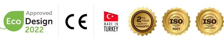 - CE ve EcoDesign 2022 Sertifikaları: Avrupa kalite standartlarına uygun üretim.